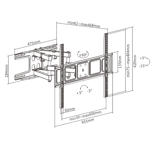 BRATECK PLB-M06H, Βάση TV επιτοίχια με περιστροφή για οθόνη 32"-75", έως 50kg Κωδικός: 98004